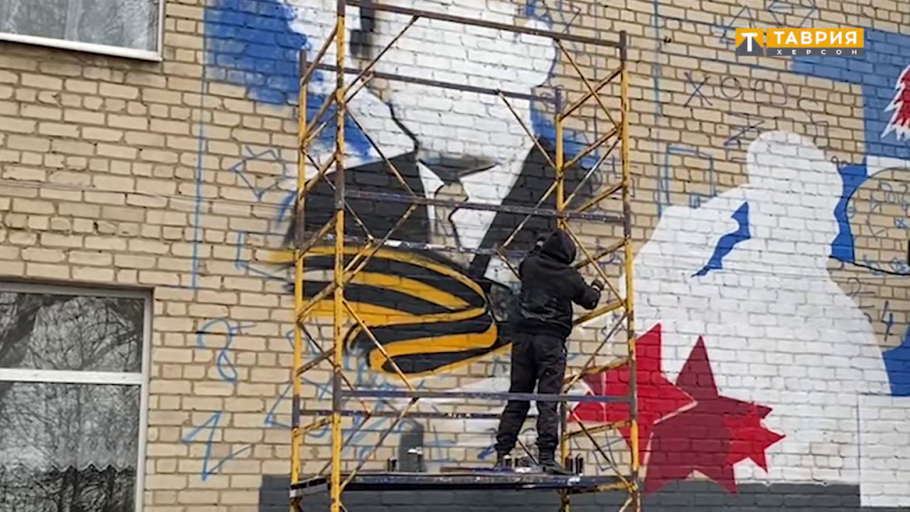 “За кілька днів тут з’явиться масштабний малюнок з Героєм радянського союзу і першим “юнармійцем” в Херсонській області”, – повідомив російським журналістам начальник регіонального штабу “Юнармії” Серафим Іванов.