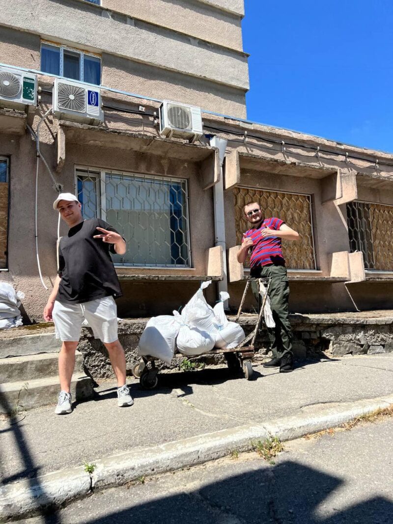 Днями представники місцевого осередку допомогли в облаштуванні захисту для однієї з лікарень Херсона. Вони закривали вікна мішками з піском, аби убезпечити лікарів та пацієнтів від можливих «прильотів».
