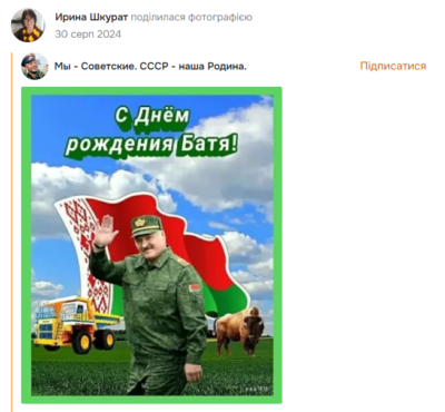 Слідчі задокументували п’ять фактів поширення Іриною Шкурат таких повідомлень влітку 2024 року. В цих повідомленнях йшлося про вдячність російським загарбникам, вітання з Днем російського флоту і героїзацію загиблих в Україні окупантів РФ.
