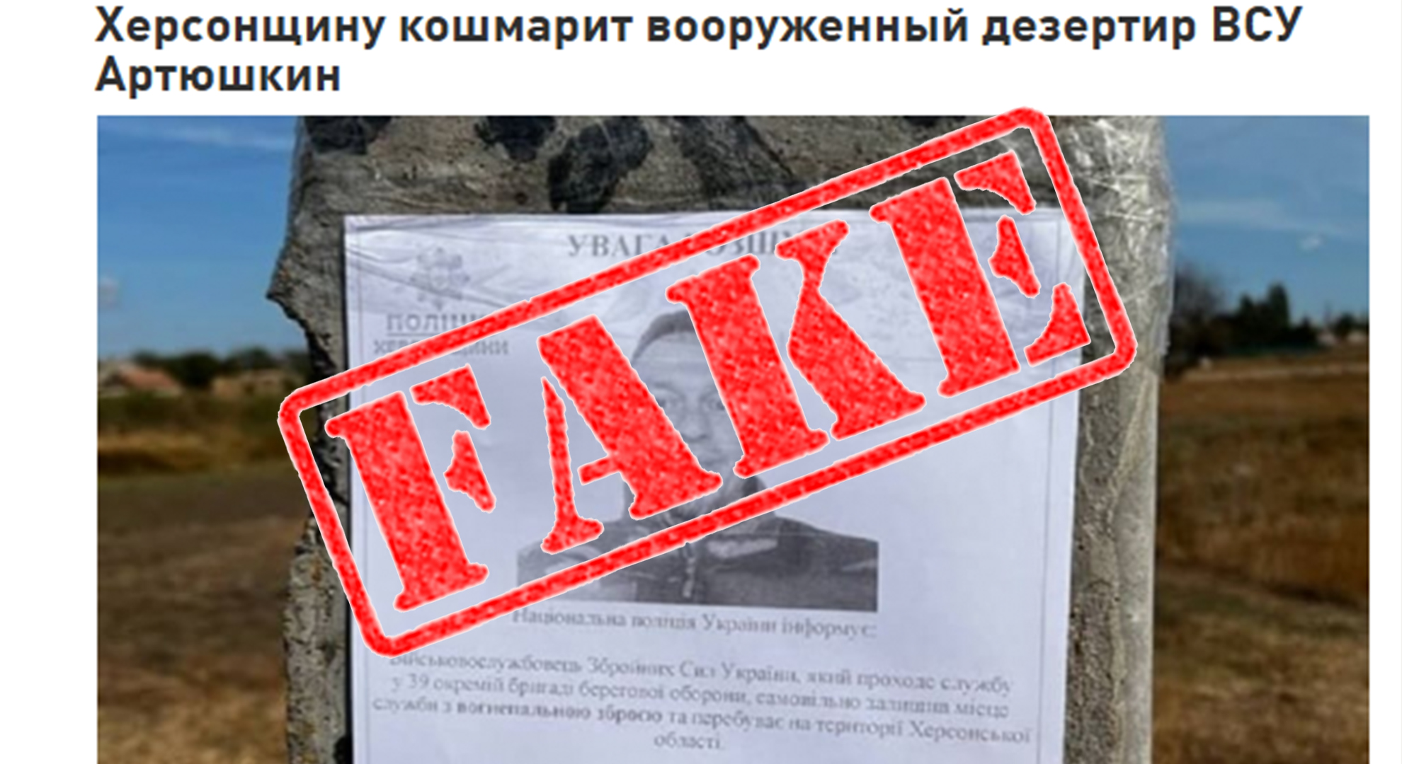 “І тепер правоохоронці Незалежної, розписавшись у своїй безпорадності, офіційно попередили херсонців: бійтеся та тремтіть. Добровільні помічники Нацполіції розвісили на стовпах та парканах приватних домоволодінь лякаючі чорно-білі оголошення з фізіономією озброєного та нестійкого в психічному плані втікача. Артюшкін бродить Херсонщиною”, – заявляють окупанти.