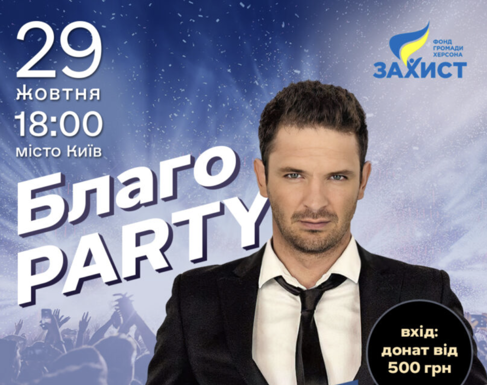 Фонд громади міста Херсон «Захист» запрошує долучитися до благодійного вечора – БлагоParty. 29 жовтня 2025 року о 18:00 відбудеться сольний концерт херсонця Віктора Романченка, переможця шоу «Х-Фактор».