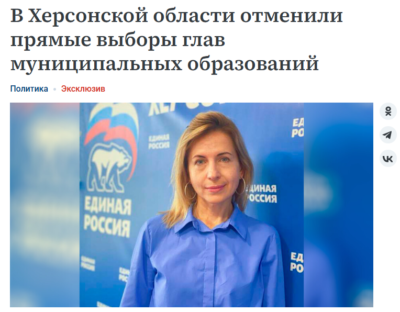 Схоже, що росіянам набридло гратися в «демократію» на окупованих територіях Херсонської області й вони поступово централізують управління регіоном. Задля цього окупанти скасували прямі «вибори» голів так званих “муниципальных образований”. Відтепер їх призначатиме «губернатор», тобто херсонський зрадник Володимир Сальдо, за погодженням місцевих незаконних «советов».