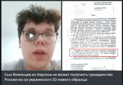 Жителі Херсонщини, які переїхали до Росії, сподіваючись на гостинність, досить часто в цій самій гостинності розчаровуються. Показова історія сталася з 21-річним Олександром Нофенком. Молодик вирішив виїхати до РФ минулої осені, адже там ще 2022 року жили його батьки. Проте хлопця чекав сюрприз: краснодарські правоохоронці визнали його ID-карту «невідповідною вітчизняним  технологіям». Український електронний паспорт в Олександра вилучили, а видати російський відмовились. До того ж на переселенця відкрили кримінальне провадження через «підробку документів».