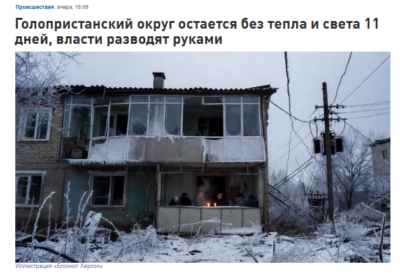 «Маємо численні скарги від жителів Нової Збур’ївки, Чулаківки, села Більшовик, Раденськ та всього Альошкінського округу. За їхніми словами, графіків віялових відключень електрики тут не дотримуються, тому люди не можуть нормально приготувати собі їжу чи попрати. У разі рідкісних увімкнень електроенергії напруга настільки низька, що не дозволяє скористатися побутовими приладами. Люди втомилися від бездіяльності адміністрацій, а електрики лише дають коротку відписку, що працюють», – зазначають російські медіа.