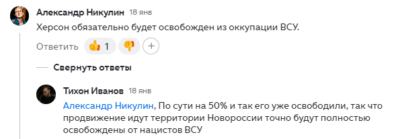 Нам також було цікаво почитати коментарі під відповідною публікацією, у яких російські боти актуалізували свої фейки про Херсон та Херсонську область. Прокоментуємо найцікавіші та найбезглуздіші з них: