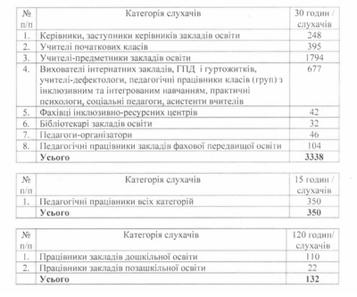 Найбільше спеціалістів-предметників, а саме 1794, пройдуть 30-годинне навчання.