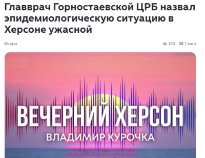 Ворожа пропаганда намагається реанімувати свої ж фейки про складну епідеміологічну ситуацію на правобережжі Херсонщини. Цього разу до спотворення реальності вони навіть залучили «медичного експерта» – Володимира Курочку, головного лікаря ЦРЛ з окупованої Горностаївки. В інтерв’ю російським медіа чоловік розповів вигадану тогорічну історію про епідемію холери в Херсоні. За спеціальністю Володимир Курочка – акушер-гінеколог, а отже його компетентність у питаннях вірусних захворювань викликає великі сумніви.