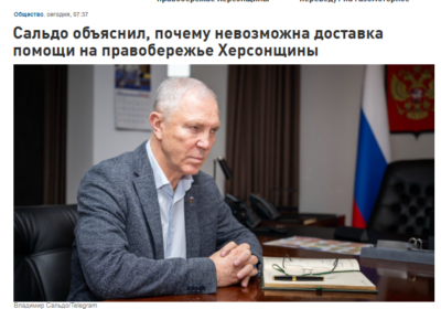 «Доставку гуманітарної допомоги поки що неможливо організувати за допомогою дронів на правий берег Дніпра через дії Збройних сил України. Люди там справді часто залишаються без нормальної допомоги. Але доставка продуктів та ліків дронами в нинішніх обставинах майже нездійсненна – йде інтенсивна війна дронів», – заявив Сальдо.
