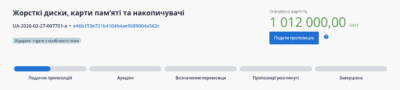 Схожу закупівлю носіїв інформації ХДУ оголошував у січні 2026 року, проте тоді очікувана вартість була меншою та становила 963 038 гривень. Тоді торги не відбулися.