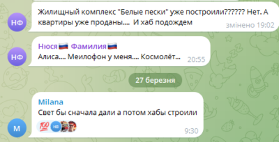Згадали коментатори російським чиновникам і розбудову нового кварталу в Скадовську «Белиє пєскі», що триває лише на папері. Логічним постає також питання, навіщо тягнути залізницю до спустілого міста, в якому окупанти вже четвертий місяць не можуть розвʼязати проблеми з електропостачанням.