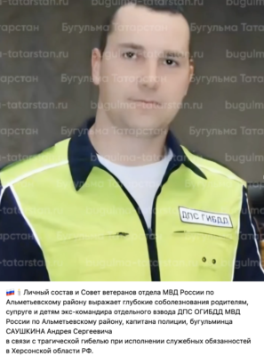 Четвертий ліквідований – лейтенант Саушкін Андрєй Серґєєвіч, 27 травня 1993 року народження, теж інспектор окупаційного відділу поліції Голої Пристані. Він з міста Буґульма російської Республіки Татарстан. До переїзду на ТОТ Херсонщини Саушкін працював командиром окремого взводу державно-постової служби відділу державної інспекції безпеки дорожнього руху МВС РФ по Альметьєвському району Татарстана.