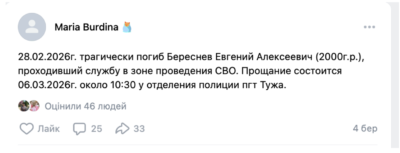 Як повідомлялось раніше, кореспондентам «IPC-Південь» вдалось встановити, що, крім Вельмамедової, 28 лютого 2026 року на лівобережжі Херсонщини загинув ще старший лейтенант Алєксєй Сажин.Чоловік приїхав на окуповані території України з Вологди.