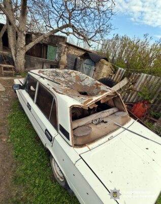 Наслідки обстрілів росіянами Херсонщини. Квітень 2026 року. Фото: Поліція Херсонської області.Наслідки обстрілів росіянами Херсонщини. Квітень 2026 року. Фото: Поліція Херсонської області.