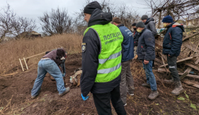 Ексгумація тіл вбитих військовими РФ у селі Правдине на Херсонщині, 30.11.2022. Фото: gp.gov.ua.